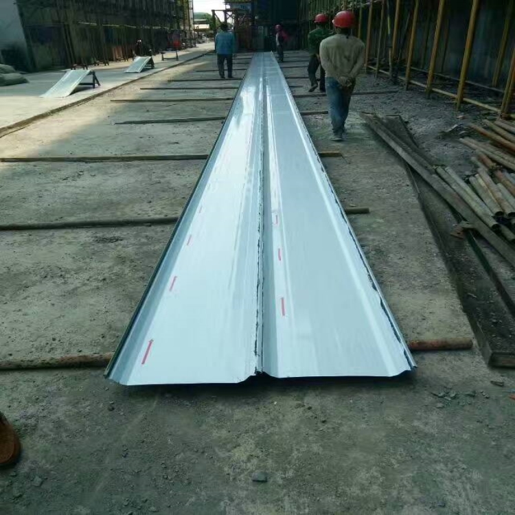 YX50-410-820彩鋼瓦是在YX75-380-760屋面暗扣板基礎(chǔ)上研發(fā)的一種利用率比較高的屋面暗扣板,也屬于隱藏式屋面板,主要是靠一個中間支架和邊支來固定在檁條上面,然后YX50-410-820彩鋼瓦,HV50-410-820彩鋼瓦直接扣合在支架上面,然后母口扣在公扣上面,經(jīng)過咬邊機嚴密的咬合,達到防水,防風(fēng)作用。